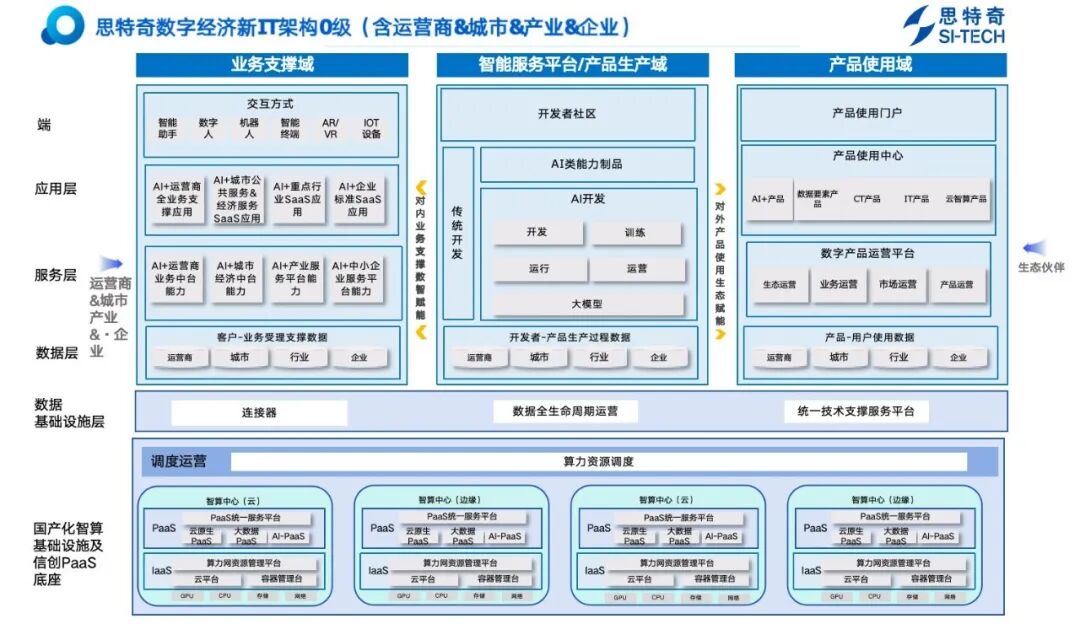 当前,数字经济深度渗透各行业、企业数智化转型正逐步从“单点技术突破”迈向“全链路体系化构建”。思特奇凭借近30年ICT领域深耕经验,依托技术沉淀与行业洞察,构建起以“左中右”布局为特征、五层协同联动的“数字经济新IT架构”,形成覆盖数智化全流程的完整体系,为运营商、城市、产业&企业三大业务域提供可落地、可扩展的转型解决方案,助力新质生产力加速形成。